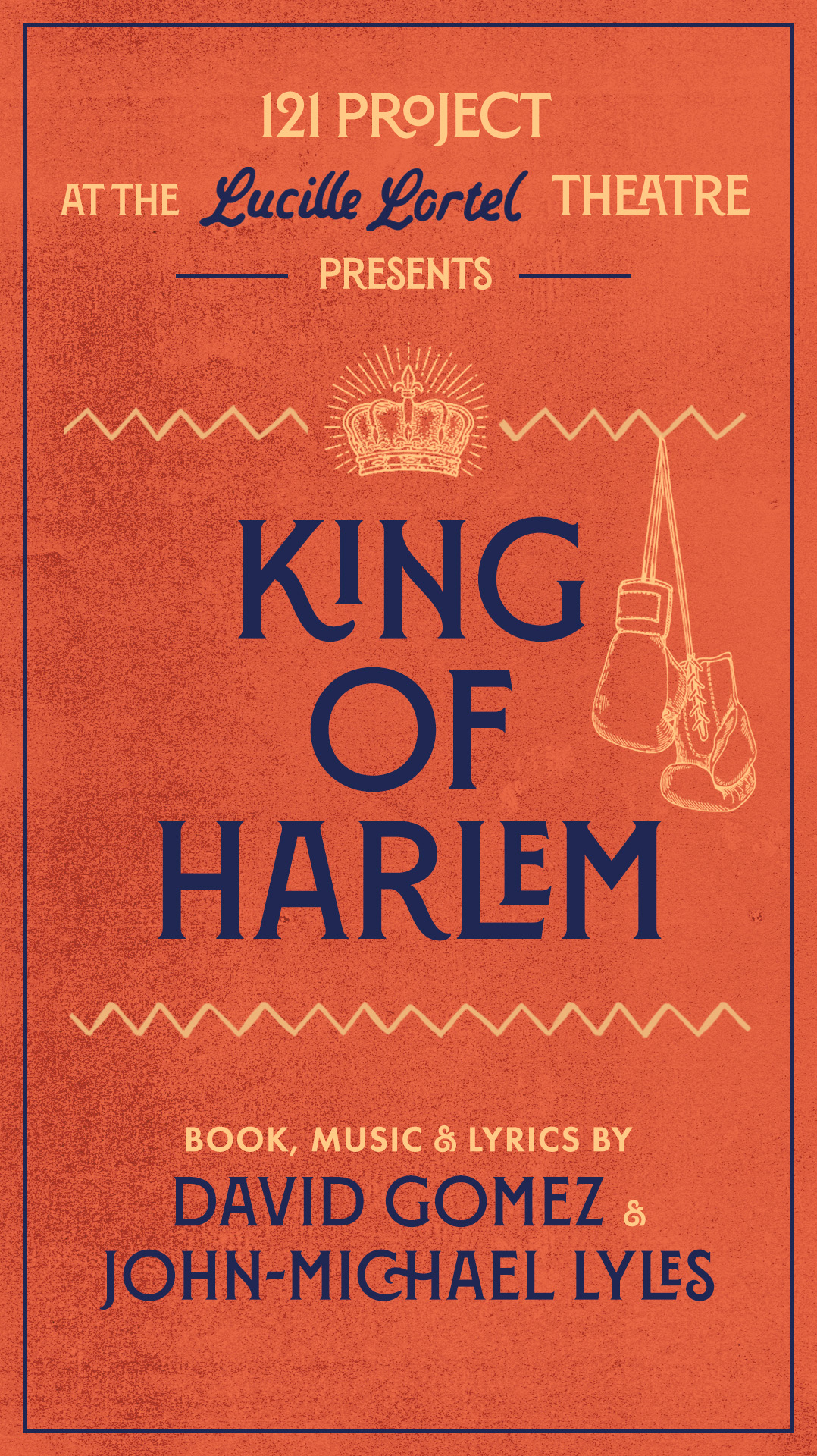King of Harlem takes place in 1929 and explores the forbidden gay love affair between Mercy Wheatley, an up-and-coming Black prizefighter, and Federico Garcia Lorca, the celebrated Spanish poet who is studying abroad at Columbia University. Mercy has the perfect life at his fingertip and is poised to marry his beautiful fiancee Sarah and finally quit his job as a janitor to become a boxing champion. All of these well laid plans come toppling down after a chance encounter with Federico on Riverside Drive. With the Harlem Renaissance as their backdrop, Federico inspires Mercy with parties, dance, poetry and shows him how it can feel to live life to the fullest. Their budding romance is challenged to overcome cultural barriers, the cutthroat boxing world and Mercy’s impending wedding. By the end of this sweaty, sexy and surreal musical Mercy finally learns firsthand that love and authenticity are always worth fighting for.